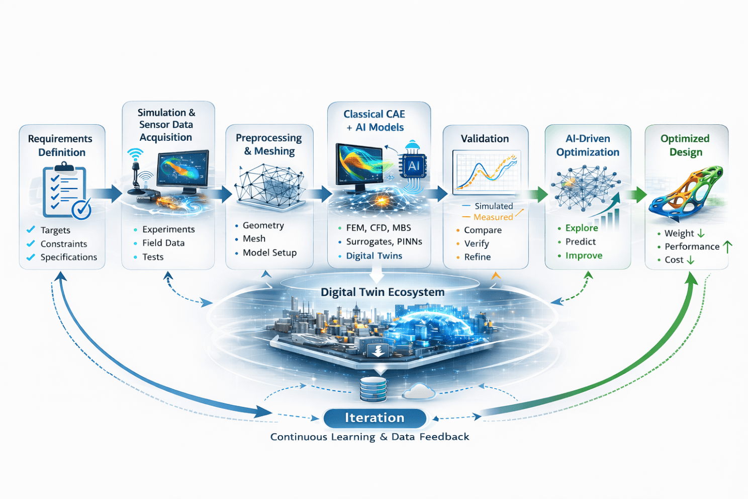 A future-oriented engineering workflow increasingly follows a closed-loop structure: